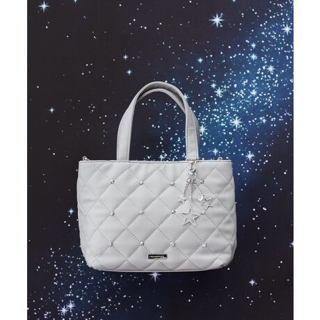 【2WAY仕様】レザー調のキルティング生地に星モチーフやビジューを散りばめたトートバッグ。