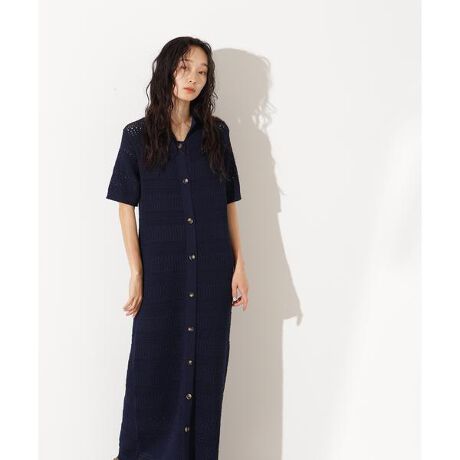 全体に施した透かし編みが涼しげなポロ襟ニットワンピース。やや太めの糸を使ったカジュアルな編地にし、適度な肌見せ感が大人っぽくヘルシーな印象です。下からボタンを少し開けてスリット風に羽織ったり、デニムパンツとのコーディネートもおすすめです。<素材>さらっとしたタッチの糸を使用。同色のインナーキャミ付きです。<詳細>仕様・前ボタン裏地・別インナーあり透け感・あり / 光沢・ややあり / 伸縮性・あり生地の厚さ・普通※モデルの着用画像の場合、光の当たり具合により、実際の色味と異なって見えることがございます。色味は、商品単体の画像をご参照ください。