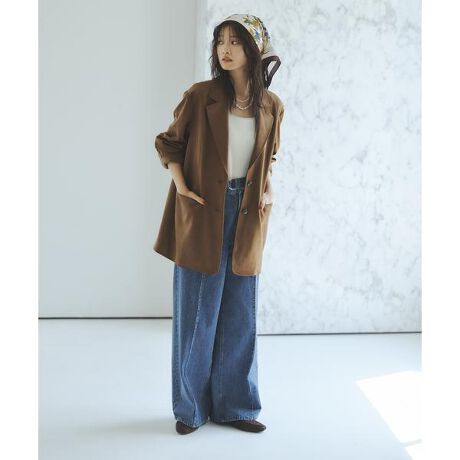 腰まわりが華奢見えするコンパクトなサイズ感のワイドデニムパンツ。脚まわりはゆとりがあるシルエットで、肉感を拾わないサイズ感です。共地ベルトやスラッシュポケット付きでキレイ見えするデザイン。共地ベルトでハイウエストマークして着ていただけます。<素材>洗いの加工感が綺麗に映えるデニムを使用。デニムの織り目はしっかりありつつも縦にスラブが立ちすぎてない表面感なので加工後もハードになり過ぎず、ブリーチやブラストも全体的に馴染んだ上品な印象です。柔らかい仕上がりの生地感で着心地も良いです。<詳細>仕様・前ボタンとファスナー裏地・なし透け感・なし / 光沢・なし / 伸縮性・なし生地の厚さ・普通デニム製品は摩擦により色移りする可能性がございます。白や淡色系衣料品や雑貨などご着用の際は十分にご注意ください。※モデルの着用画像の場合、光の当たり具合により、実際の色味と異なって見えることがございます。色味は、商品単体の画像をご参照ください。