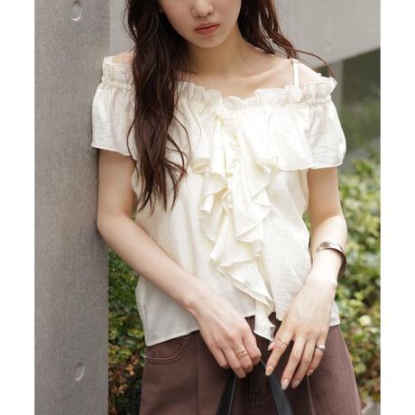 ラッフル襟オフショルダーブラウス