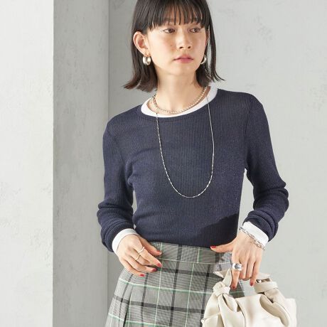 程よい透け感に、しなやかなタッチのリブニットプルオーバー。