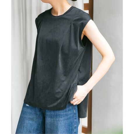 トレンド感のあるフィブリル素材を使用した、肩タックデザインのノースリーブプルオーバー。