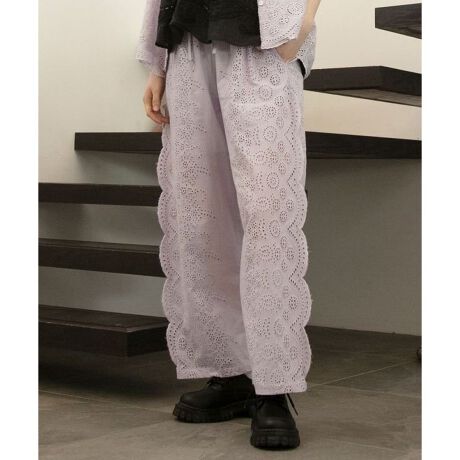 [型番:IRA-5201-2025]高見えするシフリー刺しゅうを大胆にあしらったストレートパンツ。刺しゅう部分が両サイドにありカッティングが特徴的なところがポイント。サイドポケットも付いていて、ウエスト調節可能。
