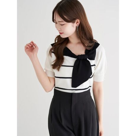 ・無地はワンカラーで着やすく、ボーダーは配色なのでアクセントになるスカーフライクなデザインがこなれ感をプラス。