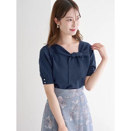 まるでスカーフを巻いたようなデザインがレディライクな雰囲気のトップス