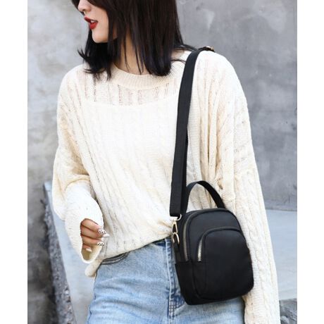 丈夫なナイロン生地を使用した、カジュアルなミニショルダーバッグ