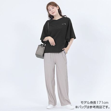 キレイめのカット&ソー・プルオーバー。◆ポイント・ハリ感のある素材で袖のドレープがキレイ・シルケット加工でツルっとした肌ざわり・フレア五分袖で二の腕カバー・浅めのVネック・左胸に配色のサインロゴ刺繍◆コーディネートボトムスにINしてもOUTでもバランス良く着こなせます。[型番:225-603809]