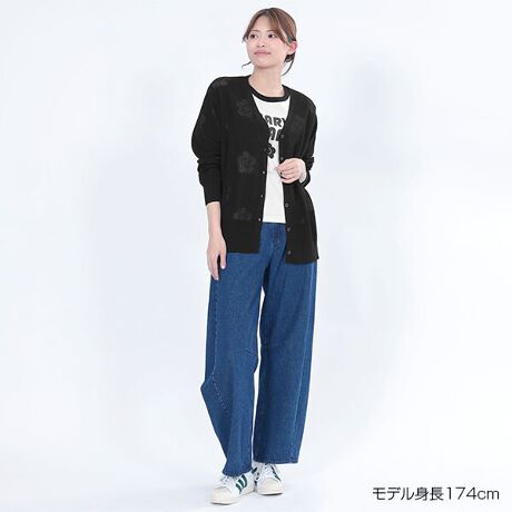 シアー素材が涼しげなカーディガン。◆ポイント・総柄デイジー・フロントボタン開き・長袖◆コーディネート同色素材の編み地でデイジー柄を表現しているので合わせやすく、中に着るアイテムのカラーで違った表情を楽しめます。[型番:225-703804]