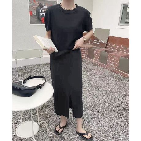 伸縮性のある生地で着心地も抜群。スリット入りで動きやすさも◎