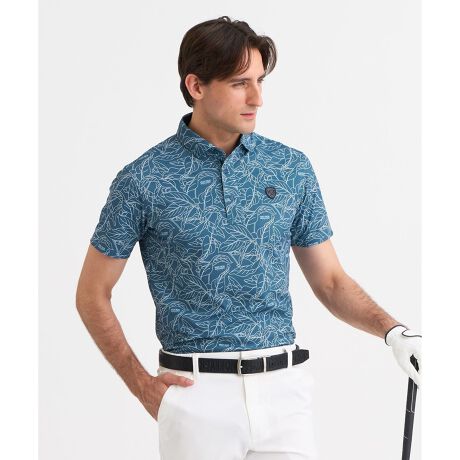 衿型は1枚で存在感を放つワイドスプレッド型を採用し、衿のおさまりが良く上品な印象を与えます。前身頃をコンパクトに仕上げてスリムに見せる視覚効果と、後身頃を大きくとることで運動量を確保した、ゴルフプレーに特化したパターン設計です。細い線で描かれたリーフ柄をプリントし、シンプルながらも遊び心のあるキャッチーなデザインに仕上げました。