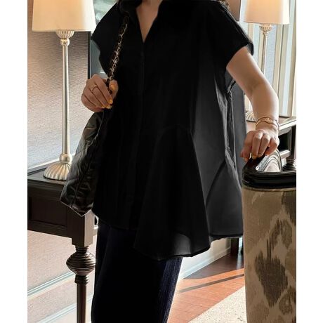 たっぷりとしたAラインシルエットが魅力のフレアシャツ。フレンチスリーブが二の腕を自然にカバーしつつ、涼しげで軽やかな印象を与えてくれます。