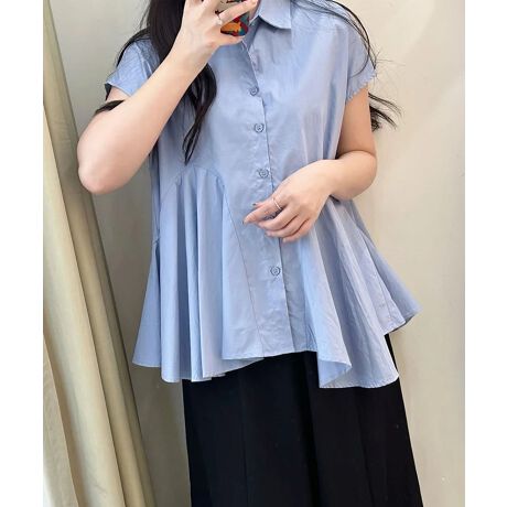 たっぷりとしたAラインシルエットが魅力のフレアシャツ。フレンチスリーブが二の腕を自然にカバーしつつ、涼しげで軽やかな印象を与えてくれます。