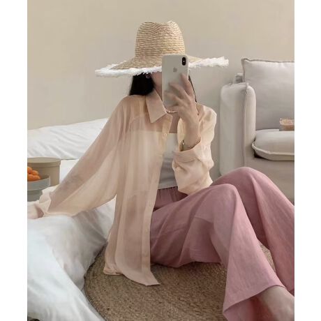 シンプルなレギュラーカラーながら、色展開が今年らしいシアーシャツ。
