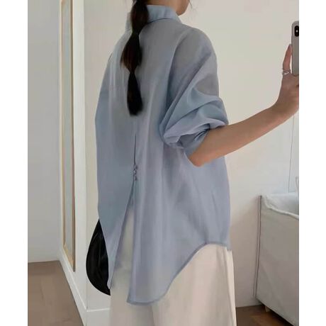 ゆったりとしたオーバーサイズシルエットに、後ろ姿に抜け感を加えるスリットデザインが魅力のシャツ。シンプルな前身頃に対し、後ろに動きのあるカッティングが印象的です。