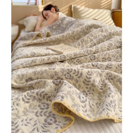 落ち着いた配色と繊細な模様が魅力のキルトブランケット。ナチュラルなインテリアにもなじみやすく、シンプルながらも上質雰囲気になります。