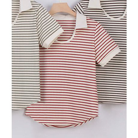 カジュアル感たっぷりのボーダーデザインに、襟元と袖口の配色がアクセントになったクルーネックTシャツ。コンパクトながら程よいゆとりがあり、体のラインを拾いすぎない着心地です。