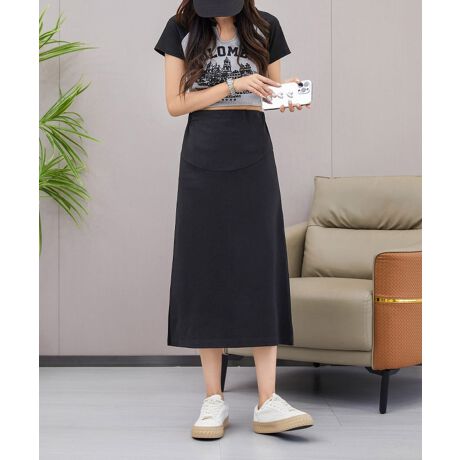 すっきりとしたシルエットにサイドスリットが入った、マタニティ用タイトスカート。腹部サポートデザインで妊娠中のお腹をやさしく包み込み、快適な履き心地を実現します。