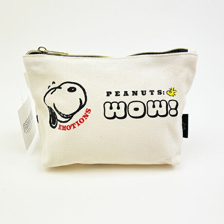 帆布で丈夫、船形で使いやすい形のポーチです。表面はカワイイスヌーピー、裏面はチラシ柄で両面デザインが楽しめます♪