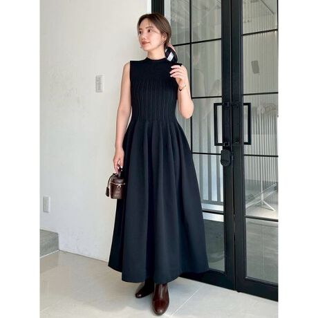 <b>【スタイルアップの工夫が盛り込まれたノースリニットワンピ。継ぎ目なく編み立てた、ラグジュアリーさが魅力】</b>