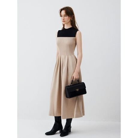<b>【スタイルアップの工夫が盛り込まれたノースリニットワンピ。継ぎ目なく編み立てた、ラグジュアリーさが魅力】</b>