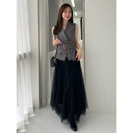 <b>【それぞれ単品でも活躍する、ベルト付きベストとチュールスカートの2枚がセットに】</b>