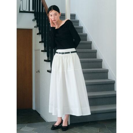 <b>【たっぷりギャザーのリッチなスカート。ベルトつきで今年らしいバランス感に進化】</b>