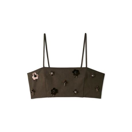 スパンコールやビジューを組み合わせた、キラキラパーツをあしらったビスチェトップス。