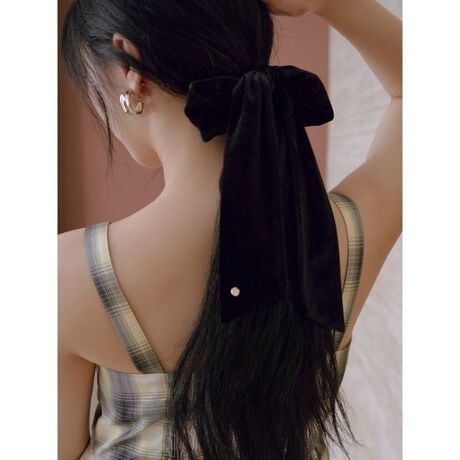 長めに垂れたリボンが動くたびにゆらゆらと揺れ、ラフにまとめたポニーテールやハーフアップのヘアスタイルとの相性が抜群です。