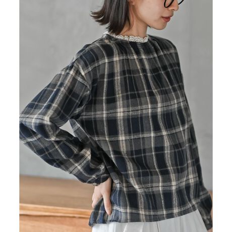 襟元のコットンレースがポイントになった大人ガーリーなブラウス。