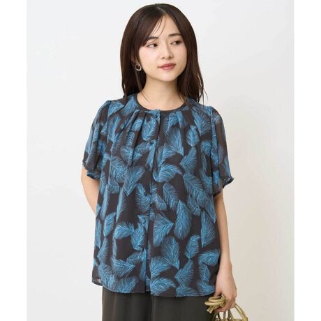 大人なリーフ柄が着映えするプリントブラウス