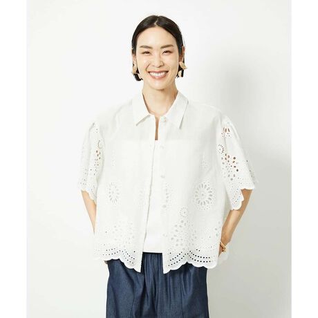 羽織としても使えるステンカラーのデザインで、甘くなりすぎずクリーンな印象のレースシャツです。
