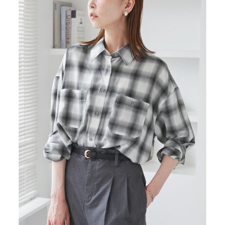 ・ゆとりのあるサイズ感のオンブレチェックシャツ。