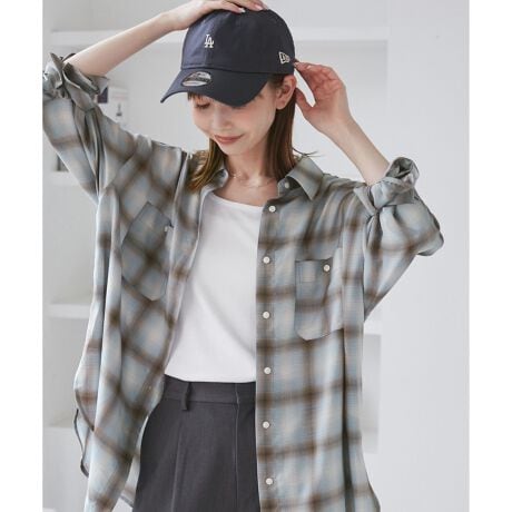 ・ゆとりのあるサイズ感のオンブレチェックシャツ。