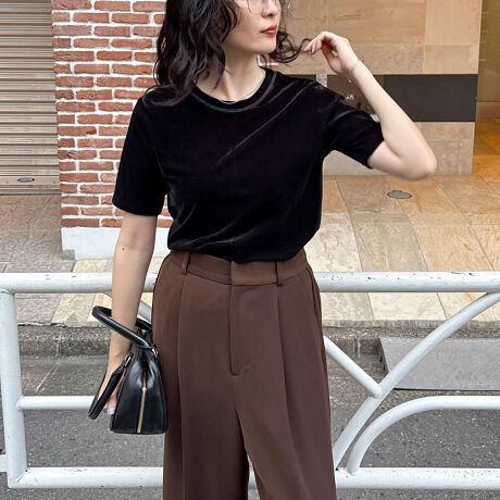 ・なめらかな光沢と柔らかな手触りが魅力のベロア素材Tシャツ
