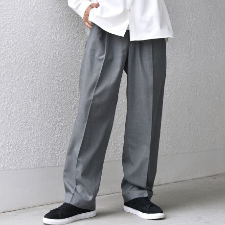 セットアップ対応が可能!上品な素材感が魅力の、2プリーツ入りキレイめイージーパンツ