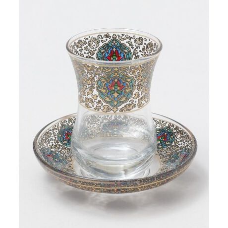 トルコでは家庭で、チャイハネ(寄合茶屋)で、1日何杯も温かいチャイを飲みます。特徴的なこの丸みを帯びた形は、古くからトルコにて愛用されている伝統的なスタイルです。イスラム模様やトルコの花であるチューリップ等のデザインが施されています。