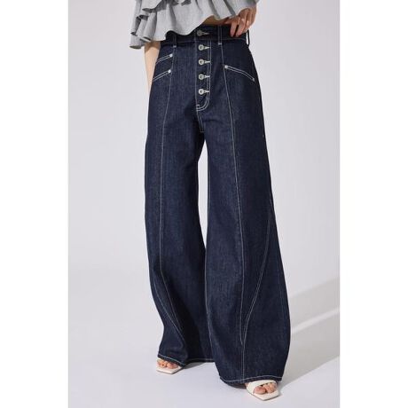【どの骨格にも美シルエットに決まるハイウエストデニムパンツ】■ポイントセンターフロントに連なったボタンを施しデザインポイントとして製作しました。また各色によって加工感に拘り、LBLUは黄味よりにし太腿のあたりをよりブリーチを強くしたことで、立体的に見えるようにしました。DBLUは逆に綺麗めな方が履けるようにワンウォッシュの色で、ステッチ色を白にしメリハリを出すことでデイリーにも履きやすいようにしました。■ディテール太もものあたりが細身に見えるようカーブするようなパターンで製作したのが一番の拘り。また視覚効果で、裾にかけて広がるデザインに見えるように切り替えやステッチで表現しました。実際の裾幅はそこまで大きく広げていないので、綺麗めなお洋服を好む方にも手に取っていただけます。■スタイリングハイウエストのデザインなのでトップスはINコーデをすると脚長効果でスタイルが更に良く見えます。またヒップやウエストが華奢な方はベルトを付けて着用するのがおすすめです。ヒールのあるサンダルはもちろん、高身長の方はローヒールサンダルでラフに着こなすのもお洒落です。■生地12.5オンスのデニム生地は、程よい厚みと柔らかな風合いを併せ持ち、快適な着心地と上品な見た目を両立。■LBLU強めのブリーチで、ヴィンテージ感漂うライトブルーに。丁寧なUSED加工でリアルな風合いを再現し、ヒゲやアタリで立体感をプラス。仕上げに強めのオーバーダイを施すことで、土っぽさを感じさせトレンドのニュアンスに。履き込むほどに、経年変化も楽しめる一本です。■DBLUワンウォッシュで仕上げ、生地本来の美しいインディゴブルーを引き立てた上品な印象の一本。透け感:なし裏 地:なし伸縮性:なし光沢感:なし厚 さ:中肉■商品のお気に入り登録お気に入りアイテムの再入荷・在庫1点などの通知を受け取ることができます。[注意事項]※画像の商品はサンプルです。実際の商品と仕様、加工が若干異なる場合があります。※画像の商品は光の照射や角度、お使いのモニター環境により、実物と色味が異なる場合がございます。※着用、お取り扱いの際は、アテンションタグをご確認ください。