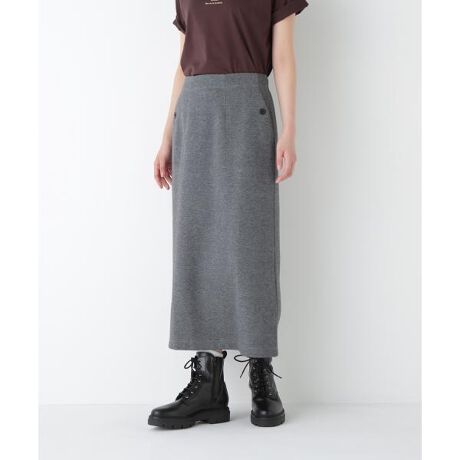 ジャージーの着心地はそのままにキレイ目に仕上げたベイカーディテールのIラインスカートです。スッキリとした続きベルトの前内側にはドロストテープを仕込んであり着用感も安心です。