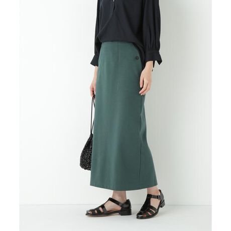 ジャージーの着心地はそのままにキレイ目に仕上げたベイカーディテールのIラインスカートです。スッキリとした続きベルトの前内側にはドロストテープを仕込んであり着用感も安心です。
