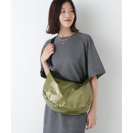 カラビナ付きのストラップがポイントの半月型ショルダーバッグです。