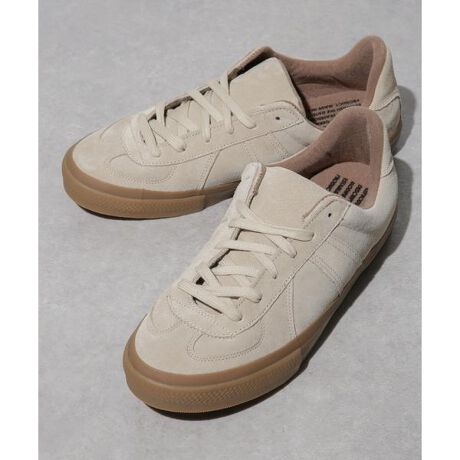 ジャーマントレーナーをベースに、アッパーは上質なイタリアンスエードとコーデュラナイロンを使用、天然ラバー含有率95%以上のヴァルカナイズドソールとEVAインソールでクッション性をUP。ライニングとインソールはナイロンポリエステル混高機能ファブリック''ドライベスト’’で抗菌/通気/吸水速乾/耐久性も◎タンと履口にパットを入れホールド感をアップさせたスケートボーディング仕様のモディファイドモデルです。