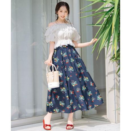 たっぷりのフルーツプリントで遊ぶ、大人かわいいフレアスカート【Design】・WILLSELECTIONオリジナルのフルーツプリントが華やかに映える、夏らしさ満点のフレアスカート♪・サイドにあしらったギャザー切替が立体感を生み、歩くたびにふわりと揺れるシルエットが女性らしさを引き立てます。・後ろはレースアップデザインになっており、ご自身のウエストに合わせてフィット感の調整が可能です。・サイドファスナー仕様で着脱もスムーズ!・同じフルーツプリントデザインを使用した「ショルダーリボンワンピース(品番:20082515100272)」と「キャミワンピース(品番:20082515100271)」も要チェック!・ロゴTを合わせてカジュアルに、ブラウスを合わせてお嬢様風にと、幅広いスタイルが楽しめます♪・シンプルなトップスでも華やかに決まり、主役スカートとして活躍してくれます。【Fabric】・裏地付き。・ホワイト、ネイビーの2色展開となります。【Care】ホワイト:手洗い可能ネイビー:ドライクリーニング