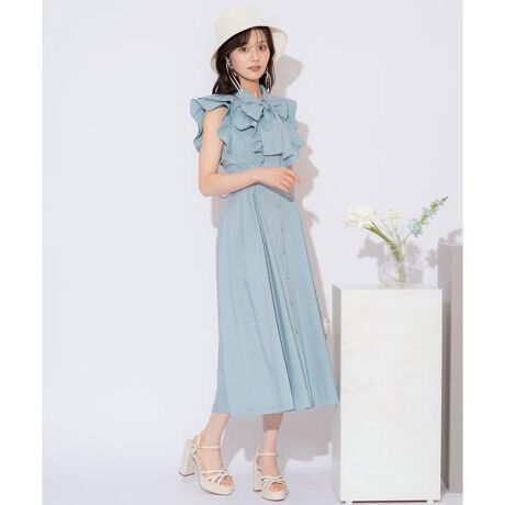 リボンタイタックウエストシャツワンピース
