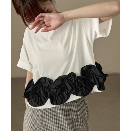 Fashion Letter ファッションレター シンプルな無地Tにタフタ素材のフリルをドッキング。