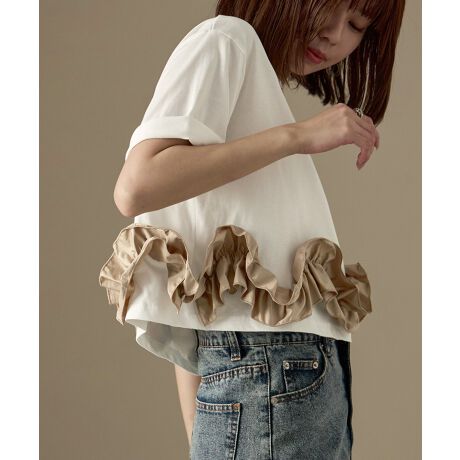 Fashion Letter ファッションレター シンプルな無地Tにタフタ素材のフリルをドッキング。