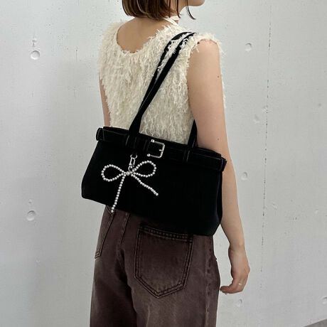 ベルトのデザインがシンプルバッグのワンポイントに。
