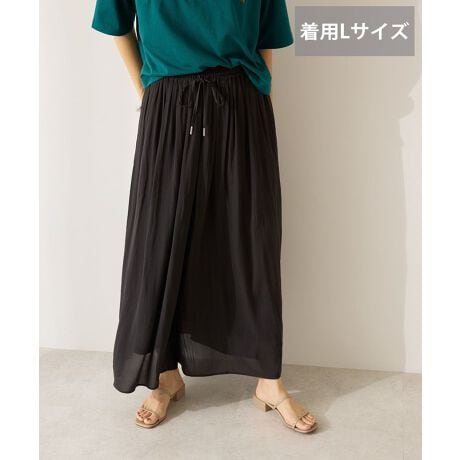 ふんわりとしたシフォン素材が華やかに揺れるガウチョパンツ。ひんやりと涼やかな接触冷感素材で暑い季節にも爽やかにご着用いただけます。落ち感あるワイドな縦長シルエットが腰回りをさりげなくカバー。女性らしい柔らかさと動きやすさを兼ね備えたデザインが際立つおすすめの一枚です。