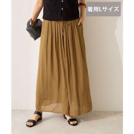 ふんわりとしたシフォン素材が華やかに揺れるガウチョパンツ。ひんやりと涼やかな接触冷感素材で暑い季節にも爽やかにご着用いただけます。落ち感あるワイドな縦長シルエットが腰回りをさりげなくカバー。女性らしい柔らかさと動きやすさを兼ね備えたデザインが際立つおすすめの一枚です。