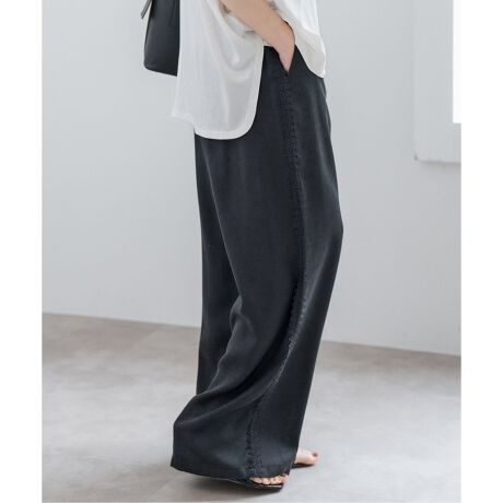 定番のラインパンツに繊細なレースをあしらい、シンプルながらも印象的なアクセントを加えた一着です。