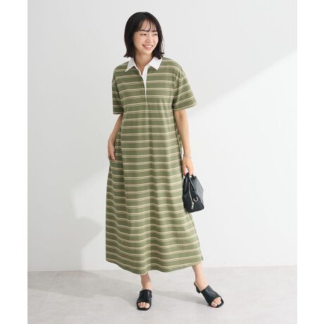 おしゃれな配色ボーダーがアクセントになるワンピース。トレンドのポロシャツデザインが目を惹き、一枚でスポーティ×フェミニンなスタイリングが完成します。接触冷感素材で仕立て、暑い季節でもひんやりと涼しい肌触りもポイント。サイドスリット入りで歩きやすく、デイリーユースにピッタリなアイテムです。透け感[なし]